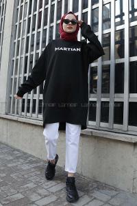 Modalamelif Bisiklet Yaka Martian Yazı Baskılı Sweat Siyah