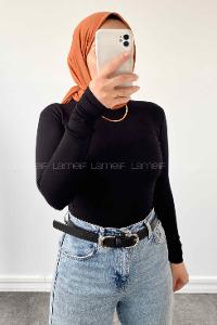 Lamelif Bisiklet Yaka Düz Renk Body Siyah