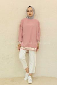 Modalamelif Bisiklet Yaka Şerit Detaylı Tunik Pudra