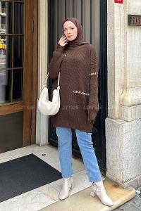 Lamelif Bisiklet Yaka Triko Kazak Kahverengi