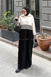 Lamelif Düğme Kapama Tesettür Elbise Siyah