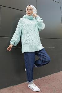 Modalamelif Boğazlı Önü Saç Örgü Kazak Mint
