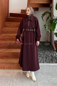 Lamelif Düğme Kapama Tesettür Elbise Bordo