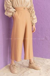 Lamelif Cırt Kapamalı Krep Pantolon Sütlü Kahve