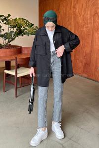 Lamelif Bombe Cepli Gabardin Gömlek Siyah