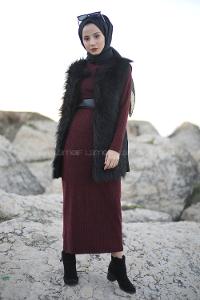 Lamelif Bel Tünel Detaylı Elbise Bordo