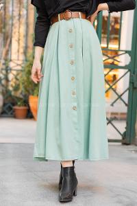 Modalamelif Boydan Düğmeli Kemerli Etek Mint Yeşili