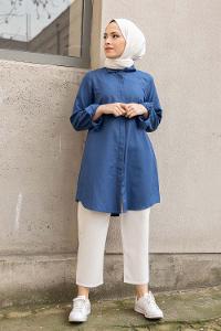 Lamelif Kol Tünel İp Detaylı Gömlek Bebe Mavisi