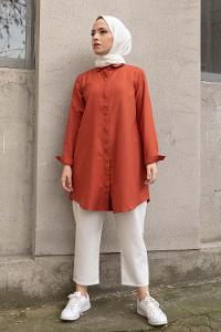 Lamelif Kol Tünel İp Detaylı Gömlek Acı Kahve