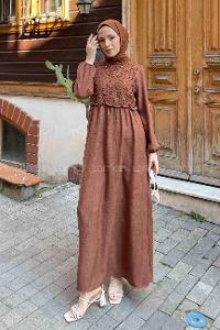 Lamelif Elica Tesettür Elbise Acı Kahve