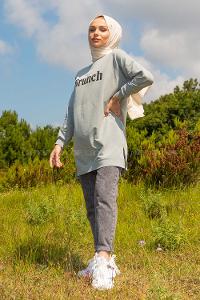 Modalamelif Brunch Yazı Baskılı Sweatshirt Gri Melanj