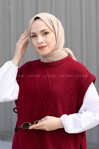 Lamelif Biyeli Müslin Şal Bordo Kemik