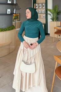 Lamelif Büzgü Detaylı Sandy Body Zümrüt