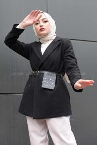 Lamelif Çanta Aksesuarlı Ceket Siyah