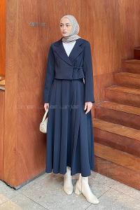 Lamelif Ceketi Yandan Bağlamalı İnterlok Etekli Tesettür İkili Takım Lacivert