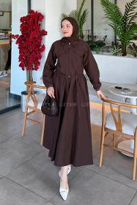 Lamelif Yarasa Kol Etekli Tesettür Takım Kahverengi