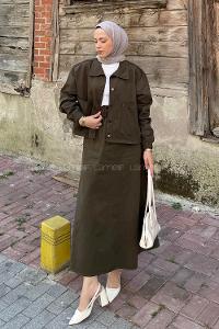 Lamelif Cep Detaylı İkili Etek Tesettür Takım Haki