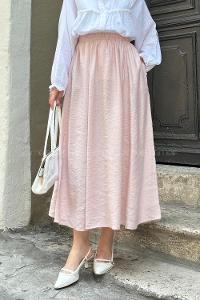 Lamelif Cep Detaylı Keten Etek Pudra