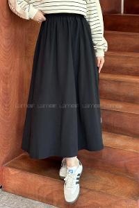 Lamelif Scuba Kumaş Kloş Etek Siyah
