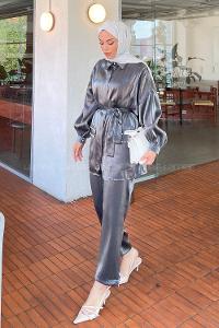 Lamelif Balance Armalı Çımalı İkili Tesettür Takım Gri