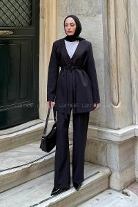 Lamelif Sırt Fermuar Detaylı Pantolonlu Takım Siyah