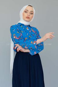 Lamelif Omuz Vatka Detaylı Tesettür Gömlek Saks Mavisi