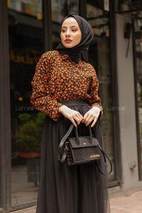 Lamelif Omuz Vatka Detaylı Tesettür Gömlek Acı Kahve