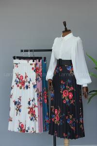 Modalamelif Çiçek  Desen Piliseli Etek Ekru