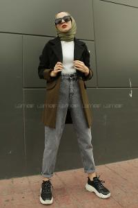 Modalamelif Çif Renk Boyfirend Kaşe Ceket Siyah Haki
