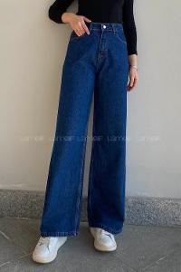 Lamelif Çift Cepli Bol Paça Pantolon Koyu Mavi