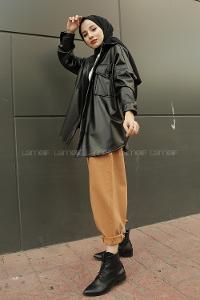 Lamelif Omuz Vatka Detaylı Tesettür Gömlek Siyah