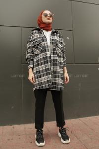 Modalamelif Çift Cepli Ekose Gömlek Siyah Beyaz