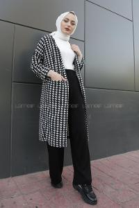 Modalamelif Çift Cepli Kazayağı Desen Hırka Siyah Beyaz