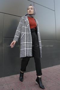 Modalamelif Çift Cepli Kazayağı Desen Kaban Siyah Beyaz