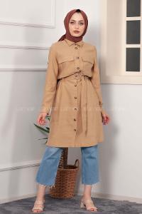 Modalamelif Çift Cepli Kuşaklı Tunik Sütlü Kahve