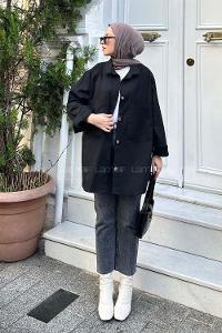 Lamelif Omuz Vatka Detaylı Tesettür Gömlek Siyah
