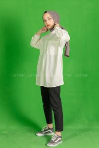 Lamelif Omuz Fırfırlı Tesettür Tunik Beyaz