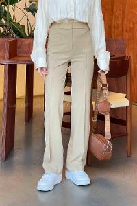 Lamelif Yüksek Bel İspanyol Paça Pantolon Sütlü Kahve