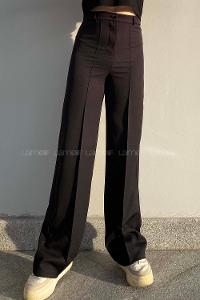 Lamelif Çımalı Bol Paça Pantolon Siyah