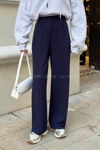 Lamelif Paçası Katlı Yüksek Bel Pantolon Lacivert