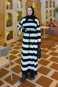 Lamelif Çizgi Detaylı Bağlamalı Elbise Siyah