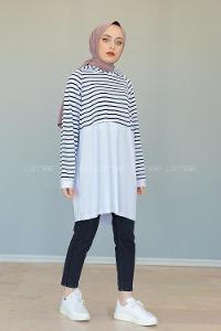 Modalamelif Çizgili Kapşonlu Tunik Beyaz Siyah