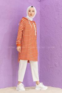 Modalamelif Çizgili Kapşonlu Tunik Kiremit