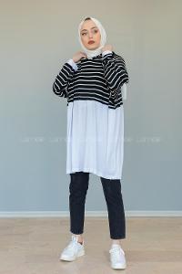 Modalamelif Çizgili Kapşonlu Tunik Siyah Beyaz