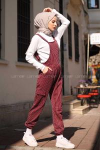 -Düz kesim yaka ayarlanabilir askılı ve metal klipsli kargo slopet. İki yandan cepli ayak bilek uçları lastik ile büzmeli.