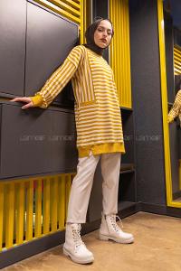 Modalamelif Çizgili Süs Cep Detaylı Sweat Hardal Sarısı
