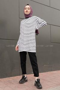 Modalamelif Çizgili Tunik Beyaz Siyah