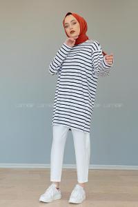 Modalamelif Çizgili Tunik Beyaz Siyah
