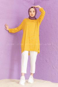 Modalamelif Çizgili Tunik Hardal Sarısı