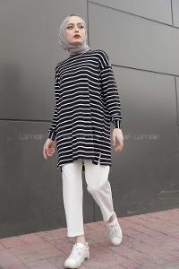 Modalamelif Çizgili Tunik Siyah Beyaz